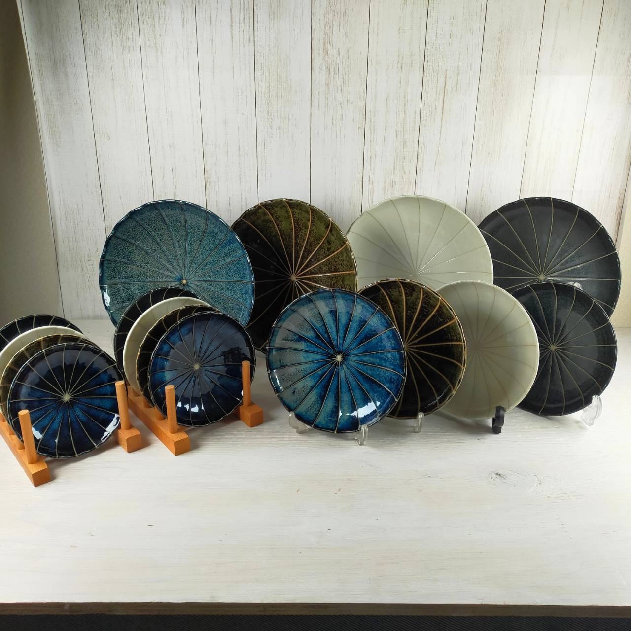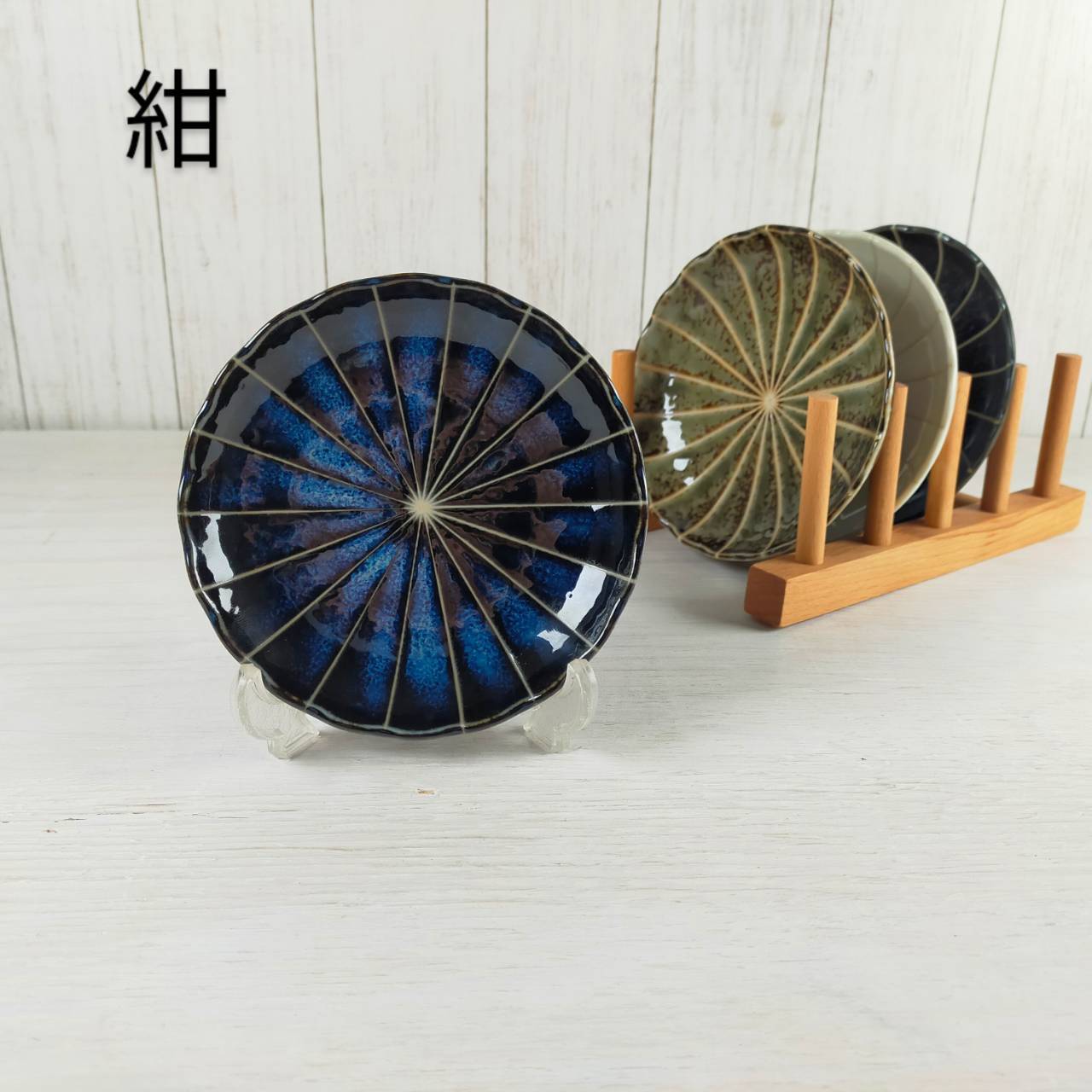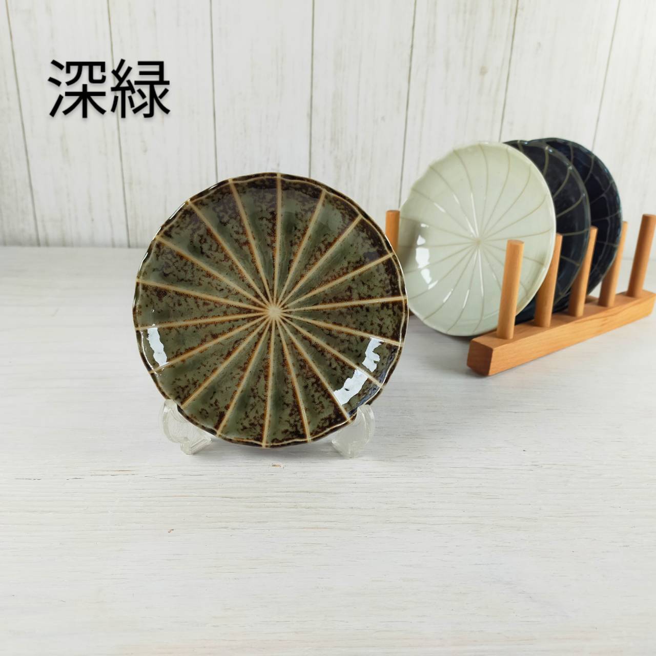 【美濃焼】十草菊型 12cm皿 2枚セット(紺・深緑・白・黒)/小皿